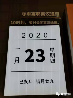 翻开今天的集邮日历,1月23日映入眼帘。这组数字将时光带回到一年前的武汉,那个因新冠肺炎疫情暂时关闭离汉通道的上午十点。