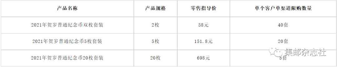 (二)为满足更多客户的购买需求,“贺岁”币装帧产品实行限额零售,每个规格单个客户单渠道限购数量见装帧规格及售价部分表述。