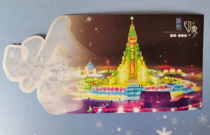 当来到一幢冰雕玉器而成、具有浓郁俄罗斯建筑风格的哈尔滨冰雪邮局门前时,我们格外高兴。扫了健康码进入冰雪邮局,热情的邮政服务人员立即上前为我们进行防护处理,向我们介绍各种业务。暖融融的环境,热情周到的服务,驱散了我们身上的寒冷,一股春意涌上心头。琳琅满目的邮品、纪念品令我们目不暇接。特色邮品区、加盖纪念邮戳区、咔嚓网红拍照区、听说声影明信片打印区、旅游纪念品区等场景,更加突出了冰雪主题邮局的独特,为游客营造了参与感、娱乐感、互动感极强的氛围,让人乐在其中、流连忘返。冰晶般的墙壁搭配明亮色彩的手绘画、绚丽的彩灯、丰富多彩的冰雪大世界明信片、旅游文创品,旅游纪念邮戳,为冰冷的世界增添了诗情画意。一位独自从上海来的美女,把一张写满祝福的冰雪明信片寄给家乡的父母,让父母欣赏欣赏北国冰雪风光,同时表达自己思乡之情;一对南京来的情侣,挑选了两张雪雕明信片互相寄给对方抒发爱意。还有一位十分喜爱集邮的广东游客,特地前来收集这里特色的冰雪纪念封、片和纪念戳。他说:“今年冰雪大世界门票降至100元,比往年便宜了许多,此时前来赏冰玩雪,领略北国风光,收集冰雪邮品正当时。”
