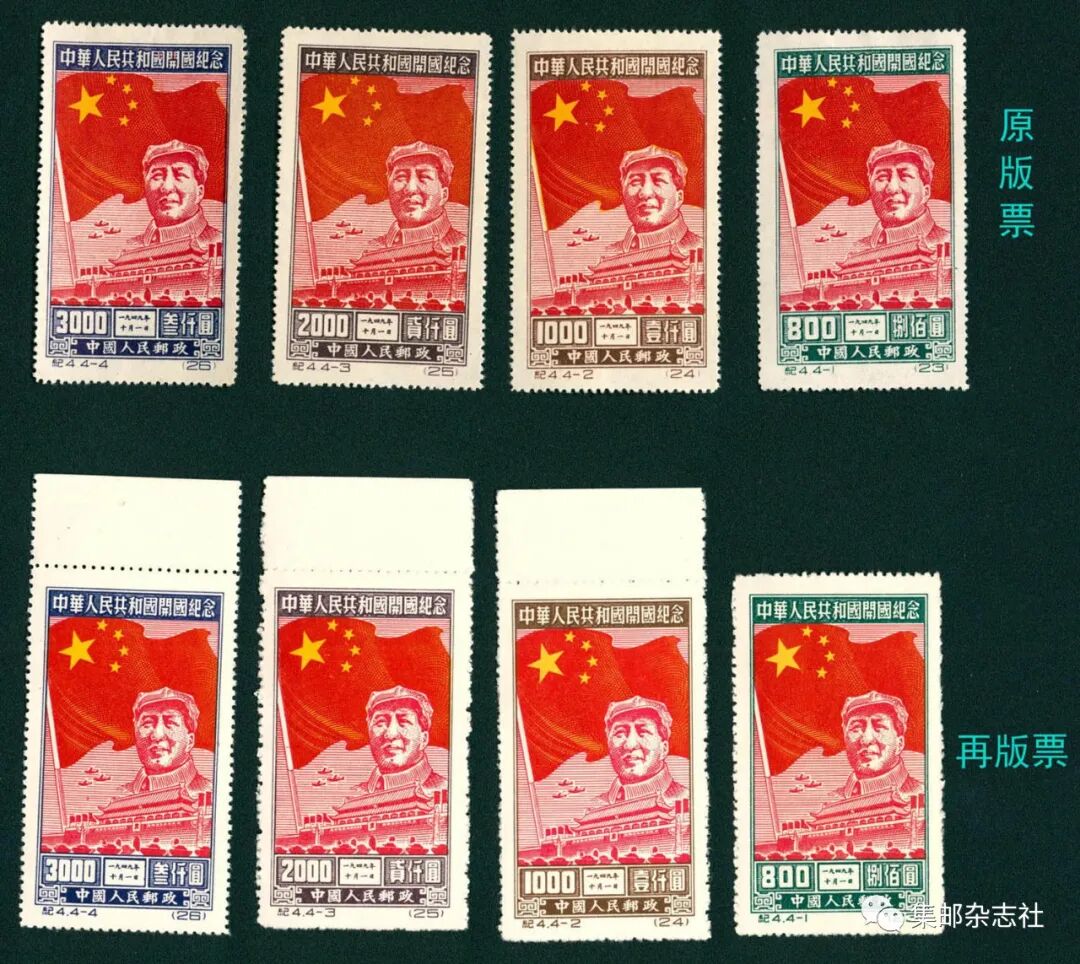 006号 纪4开国纪念原版、再版各一套共8枚全新票(再版票部分有边纸)