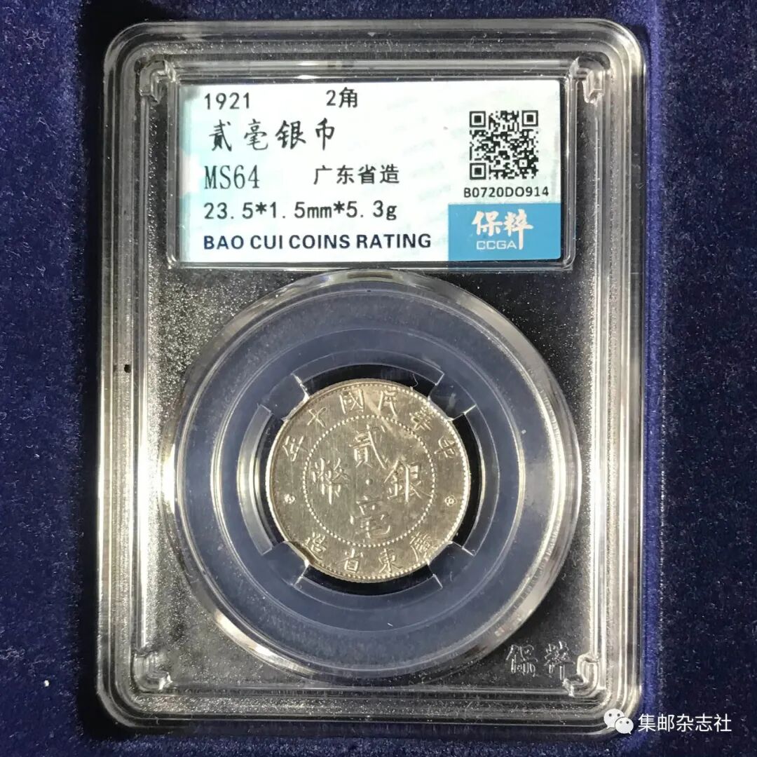 027号 民国十年广东省造贰毫银币