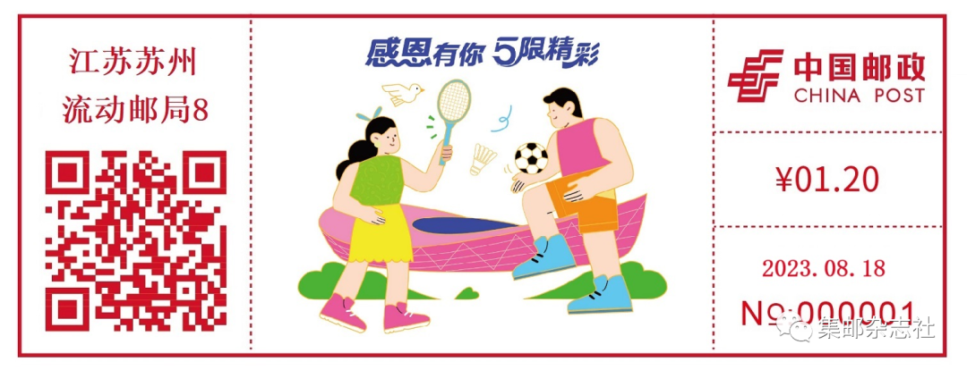 经中国邮政集团有限公司批准,江苏省苏州市邮政分公司将于2023年8月18日启用“感恩有你 5限精彩”数字化防伪邮资机宣传戳(打印型)一枚。为方便大家收藏,《集邮》杂志微店上架了该枚邮资机宣传戳的3款实寄产品。