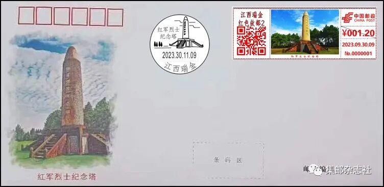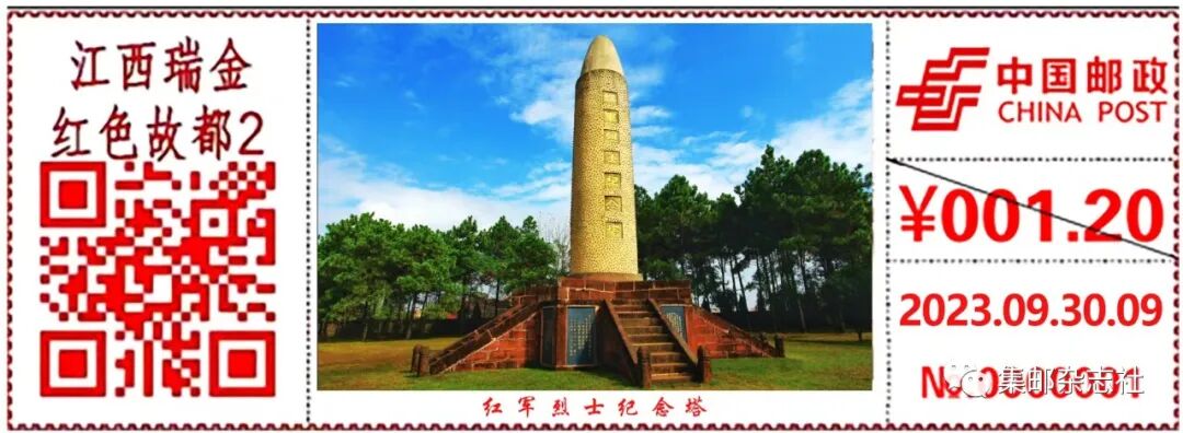 经中国邮政集团有限公司批准,江西省瑞金市邮政分公司将于2023年9月30日启用“红军烈士纪念塔”数字化防伪邮资机宣传戳(打印型)一枚。