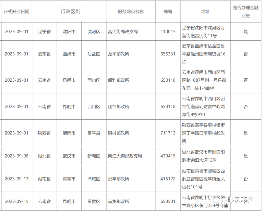 2023年9月上半月中国邮政新增及撤销的邮政机构