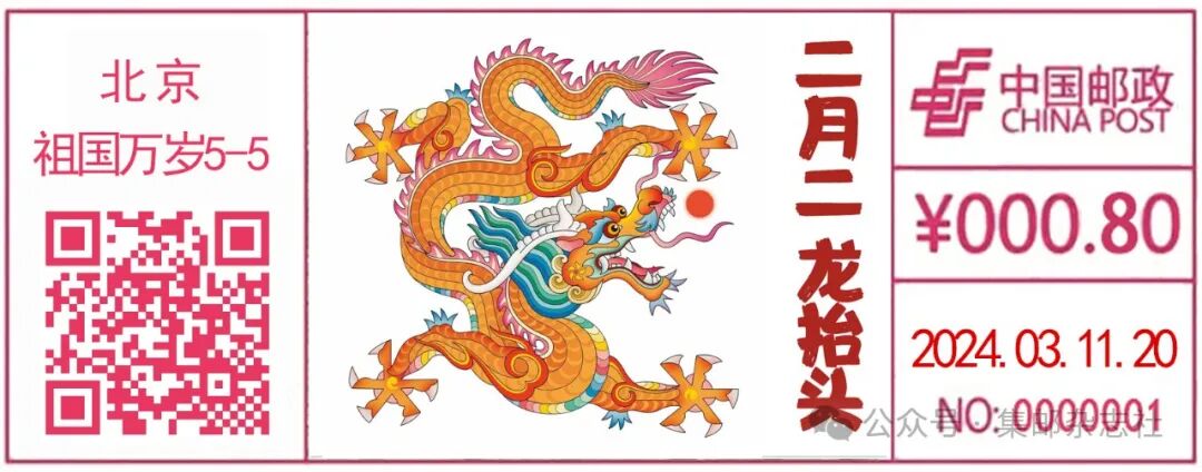 经中国邮政集团有限公司批准,北京祖国万岁主题邮局将于2024年3月11日启用“二月二 龙抬头”彩色数字打印型