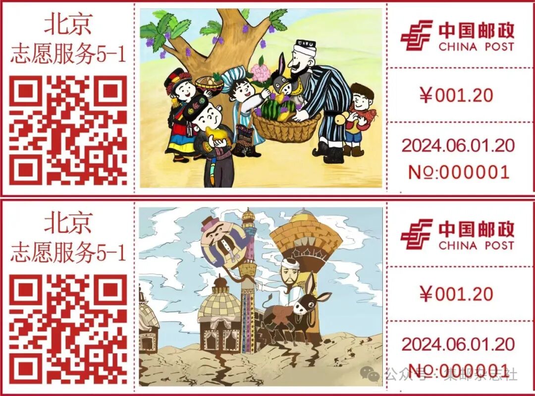 经中国邮政集团有限公司批准,北京市志愿服务主题邮局将于2024年6月1日启用“阿凡提”彩色数字打印型邮资机戳一组2枚。