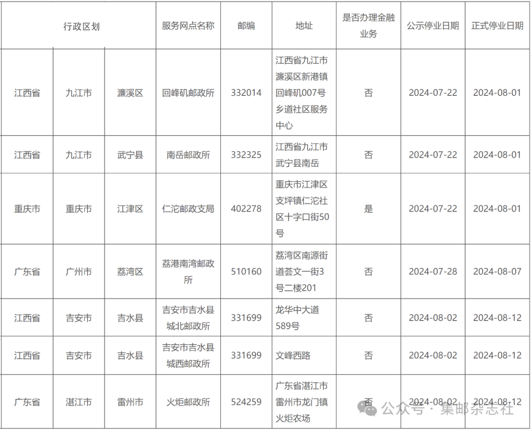 2024年8月上半月,中国邮政集团有限公司在全国范围内新增了2家邮政机构,撤销了7家邮政机构。详情如下。