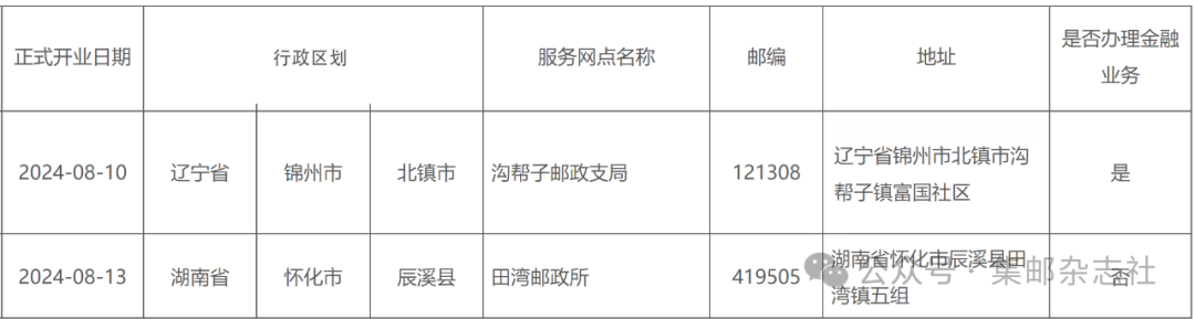 2024年8月上半月中国邮政新增及撤销的邮政机构
