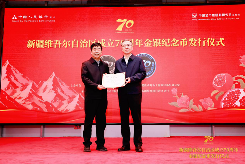 中国金币集团有限公司捐赠新疆维吾尔自治区成立70周年金银纪念币
