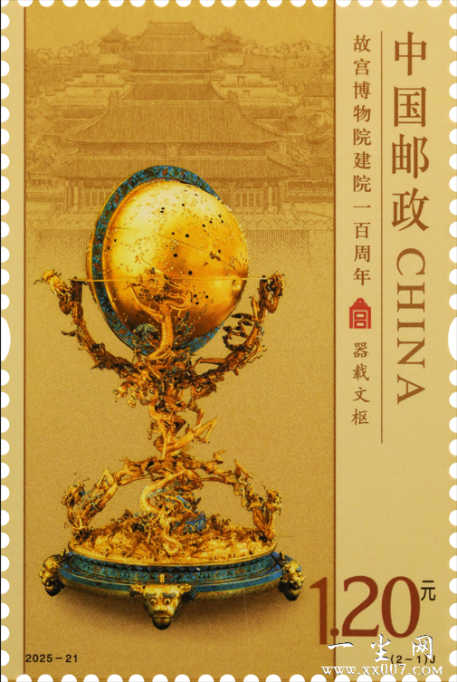 中国邮政定于2025年10月10日发行《故宫博物院建院一百周年》纪念邮票1套2枚,邮票图案名称为:器载文枢、丹青永续。全套邮票面值2.40元,计划发行数量为套票490万套,版式二69.3万版。