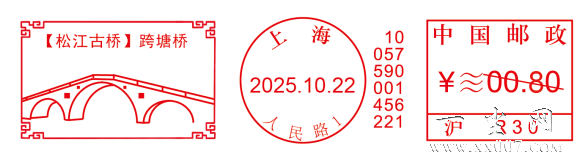 现定于2025年10月22日启用《松江古桥跨塘桥》YFM118E型邮资机戳1枚。邮资机戳使用期限:启用当日。发售及收寄网点:人民路邮政支局。咨询电话:57814716。