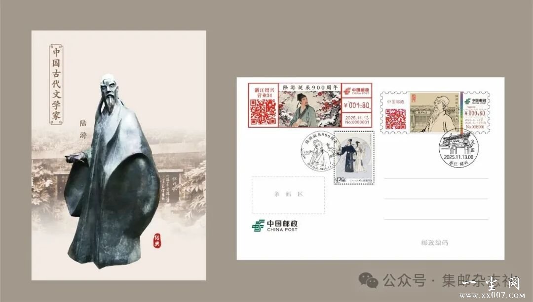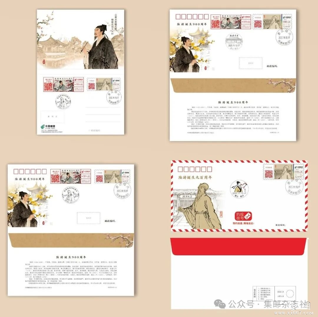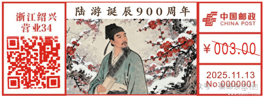 中国邮政集团有限公司将于2025年11月13日启用“陆游诞生九百周年”彩色数字打印型邮资机戳一枚。