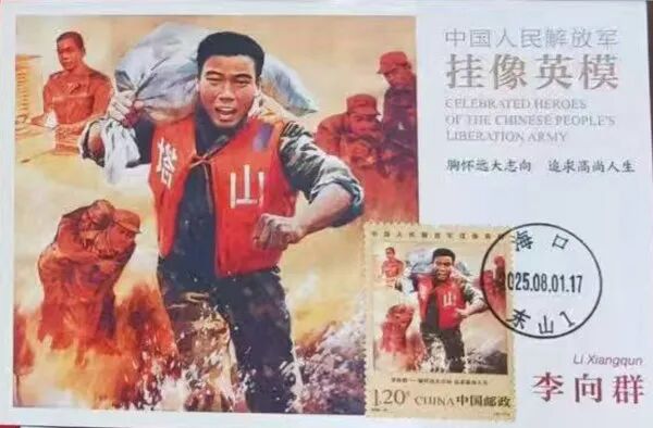 2025年8月1日,中国邮政发行了《中国人民解放军挂像英模》纪念邮票1套10枚,其中(10-7)为“李向群”。查阅相关资料得知,李向群(1978年9月21日—1998年8月22日)为海南海口人,出生于海南省海口琼山东山镇,中国共产党党员,原广州军区“塔山守备英雄团”九连战士。也就是说海口东山是英雄李向群的出生地。