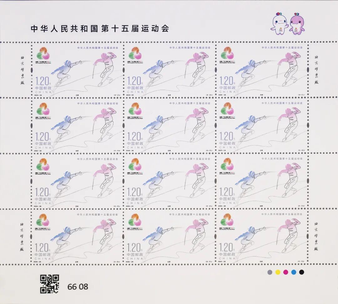 中国邮政定于2025年11月9日发行《中华人民共和国第十五届运动会》纪念邮票1套3枚,邮票图案名称为:花样游泳、击剑、乒乓球。全套邮票面值3.60元,计划发行数量为套票500万套,版式二69.3万版。