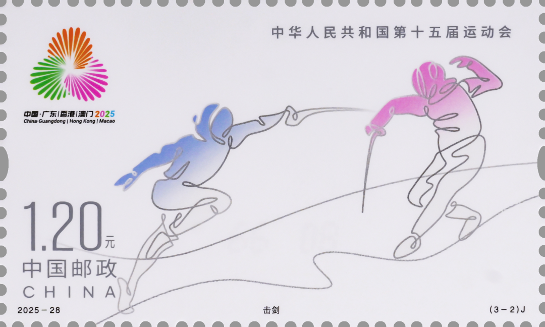 2025年11月9日,中国邮政发行《中华人民共和国第十五届运动会》纪念邮票一套3枚,邮票图案名称为:花样游泳、击剑、乒乓球。本套邮票由内地、港、澳三地设计师分别设计完成。该套邮票采用高精度胶印工艺印制,整体色彩明快,细节表现清晰。中华人民共和国第十五届运动会是粤港澳三地承办的我国规模最大、水平最高、影响最广的综合性运动会,也是香港、澳门首次承办全国运动会。