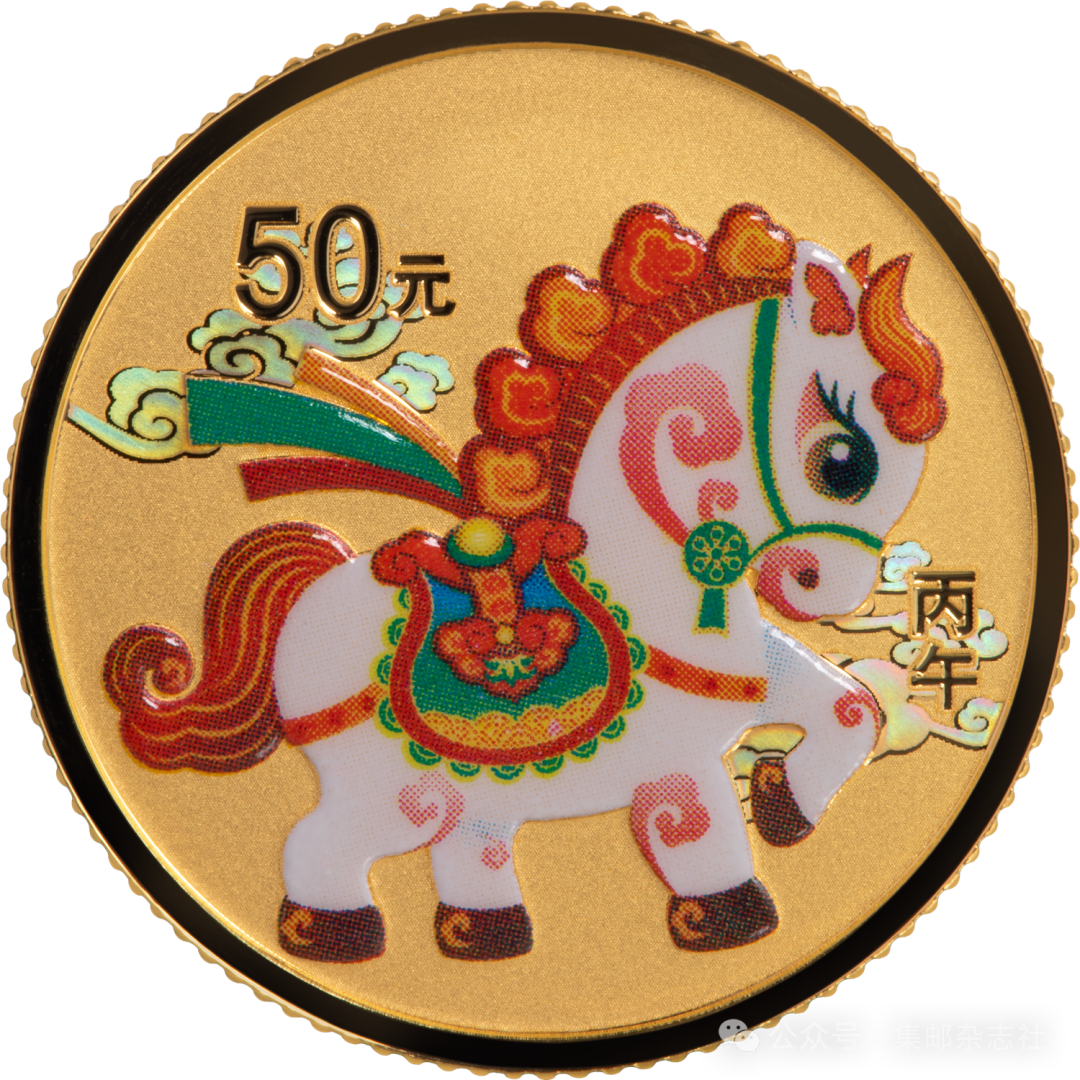 针对3克金质纪念币,王红卫表示,这枚金币以活泼可爱的小白马为主体,马身融入多个如意图案,寓意马上如意。在仅18毫米的币面上,我们通过彩印工艺让马身的繁复花纹纤毫毕现,背景采用浅浮雕光变鳞彩祥云,随视角流转焕发光彩,营造出华丽喜庆的节日氛围。
