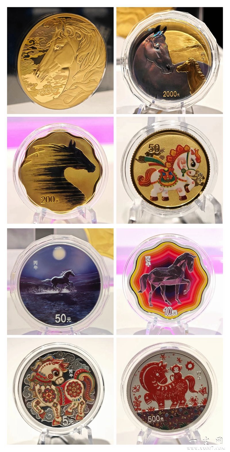 2026中国丙午(马)年贵金属纪念币共11枚,其中金质纪念币6枚(最大规格10公斤,最小规格3克),银质纪念币4枚(最大规格1公斤,最小规格15克),铂质纪念币1枚(15克)。全套纪念币设计风格多样,涵盖了古朴、庄重、富贵、华丽、童趣、活泼、温馨、和美等不同风格,通过创造性的艺术手法表达了马年生肖文化,传达了自强不息的进取精神和对马年吉祥如意的美好祝福。