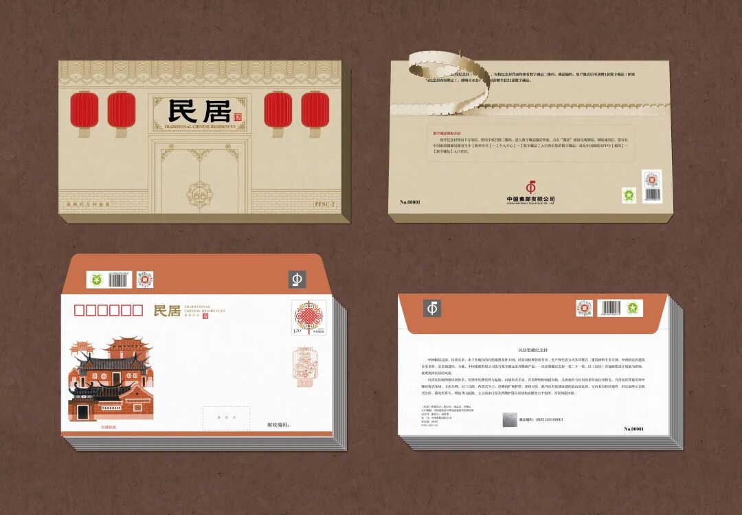 纪念封套装内所包含的数字藏品在中国邮政数字藏品平台发行,最大发行量42万枚。数字藏品内容选用《民居》邮票设计原稿配合底图及边饰延展设计展现。用户集齐21个单枚款数字藏品后,将获得《民居》合成款数字藏品激活资质,激活后随机获得一枚合成款数字藏品。
