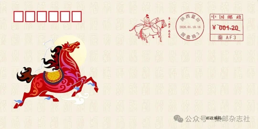 ![]() 经中国邮政集团有限公司批准,陕西省蓝田县邮政分公司将于2026年1月10日启用“牧马图”“照夜白图”邮资机戳各一枚。 为方便大家收藏,《集邮》杂志微店上架了这两枚邮资机戳的实寄封。 ![]() ![]() ![]() 挂号实寄封一组2枚,使用美术封为载体,启用首日分别加盖邮资机戳各一枚,挂号实寄给预订者。识别上方二维码即可预订。