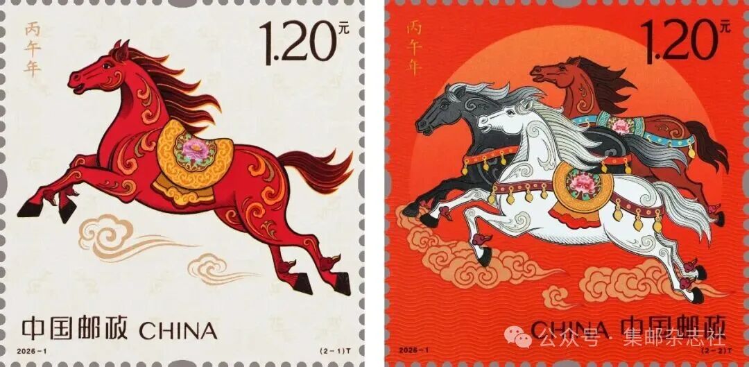 中国邮政定于2026年1月5日发行《丙午年》特种邮票一套2枚,小本票1本。详情如下: