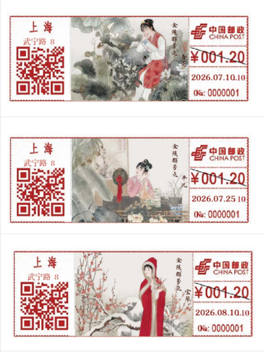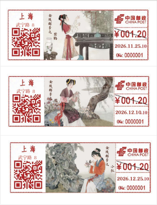 现定于2026年1月10日至2026年12月25日期间启用《金陵群芳》系列CX51型邮资机戳24枚。邮资机戳使用期限:(具体见下表)。发售及收寄网点:武宁路邮政支局。咨询电话:52909632。