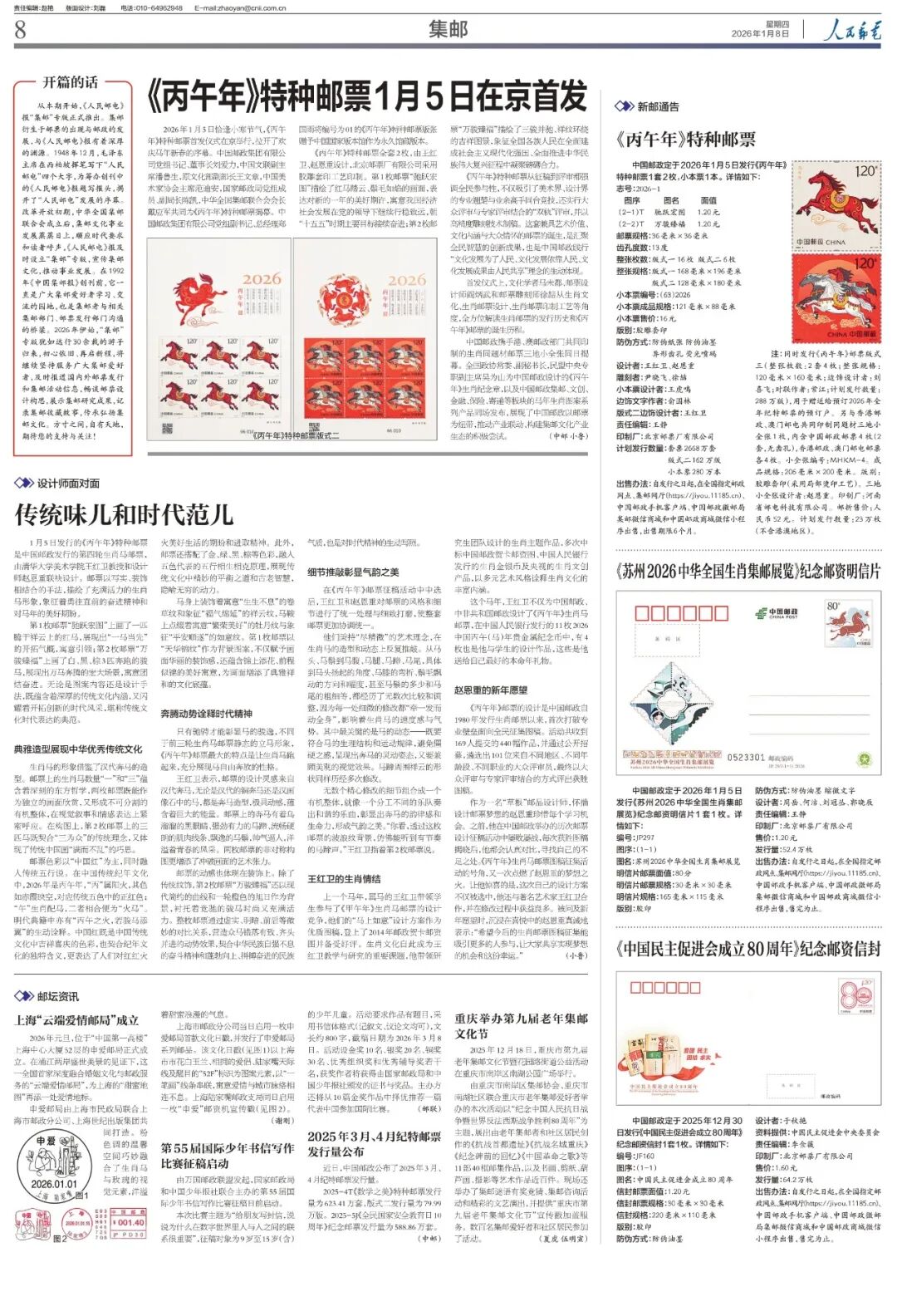 2026年1月8日起,《人民邮电》报“集邮”专版正式推出。集邮衍生于邮票的出现与邮政的发展,与《人民邮电》报有着深厚的渊源。1948年12月,毛泽东主席在西柏坡挥笔写下“人民邮电”四个大字,为筹办创刊中的《人民邮电》报题写报头,揭开了“人民邮电”发展的序幕。改革开放初期,中华全国集邮联合会成立后,集邮文化事业发展蒸蒸日上,顺应时代要求和读者呼声,《人民邮电》报及时设立“集邮”专版,宣传集邮文化,推动事业发展。在1992年《中国集邮报》创刊前,它一直是广大集邮爱好者学习、交流的园地,也是集邮者与相关集邮部门、邮票发行部门沟通的桥梁。2026年伊始,“集邮”专版犹如远行30余载的游子归来,初心依旧、再启新程,将继续坚持服务广大集邮爱好者,及时报道国内外邮票发行和集邮活动信息,畅谈邮票设计构思,展示集邮研究成果,记录集邮收藏故事,传承弘扬集邮文化。方寸之间,自有天地,期待您的支持与关注!