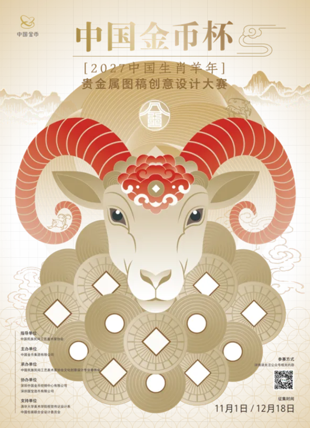 2027生肖羊年贵金属图稿创意设计大赛为该系列的重要赛事之一,旨在激发参赛者的创新灵感,深入挖掘生肖“羊”文化的精神内涵,通过创新设计将传统文化与现代审美相结合,创作富有时代特色与民族精神的羊年设计作品,同时促进创意设计与产业转化的有效衔接,让千年生肖文化在当代设计语境中焕发新生。