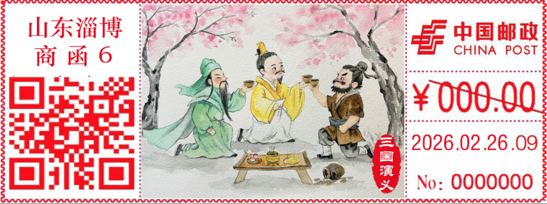 经中国邮政集团有限公司批准,山东省淄博市邮政分公司将于2026年2月26日启用“桃园结义”彩色数字打印型邮资机戳一枚。