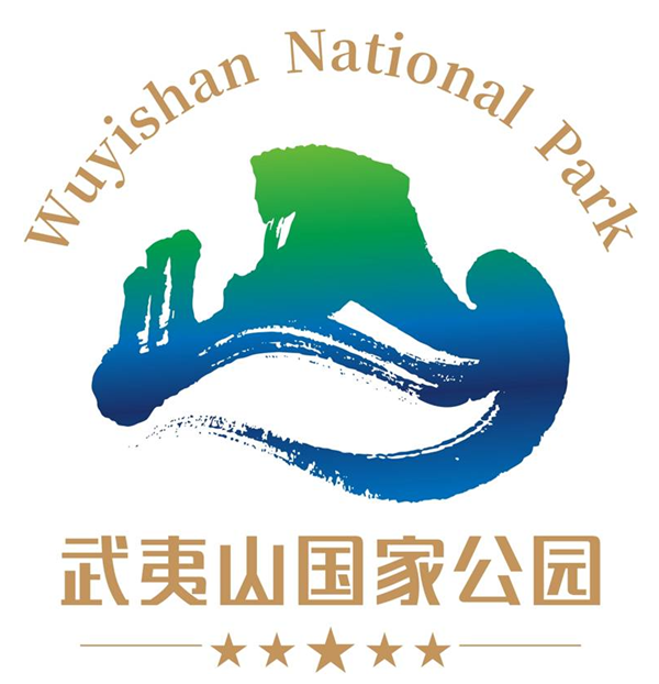 “山”写法采用篆体,中间一竖(大王峰)含“人”字,体现人与自然和谐共处;“山”字一横,形似破浪前行的竹筏,体现勇立生态文明体制改革潮头、率先开展国家公园体制试点的探索精神;一大四小的五星图案设计源于国旗,传递国家公园国家属性、国家代表,也体现国家公园在各类自然保护地中的最高保护等级;形象标识主体颜色体现青山绿水,武夷山国家公园中英文字采用金色,传递努力探索将绿水青山转化为金山银山的含义。