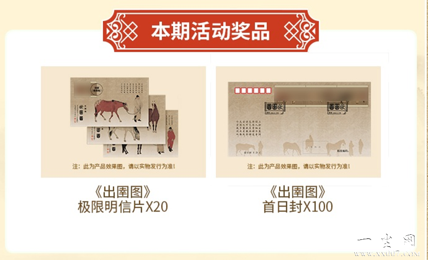 本次邮票数字化活动继续奖品大放送!我们准备了《出圉图》极限明信片和《出圉图》首日封等丰富奖品赠送~