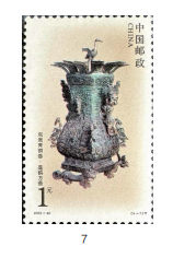 当年,许彦博到学校“伯乐相马”,郝欧不负众望,成为雕刻室的“千里马”。驰骋在艰辛的手工雕刻岗位上,她勤学苦练,技艺日臻成熟,沉稳老练,甘挑重担。仅2002年,她就参与了4套邮票的雕刻;《东周青铜器》邮票(图7为郝欧雕刻的其中一枚),她和其他3位老师一样,每人各承担两枚的雕刻。在郝欧参与雕刻的30多套邮票中,还有《历史文物灯塔》《中国古代科学家(四)》《长臂猿》《皖南古村落——西递、宏村》(均为合作)等一批手工作品。作为承前启后的一代,郝欧还是现有邮票雕刻队伍中唯一参与了两轮生肖邮票雕刻的人。
