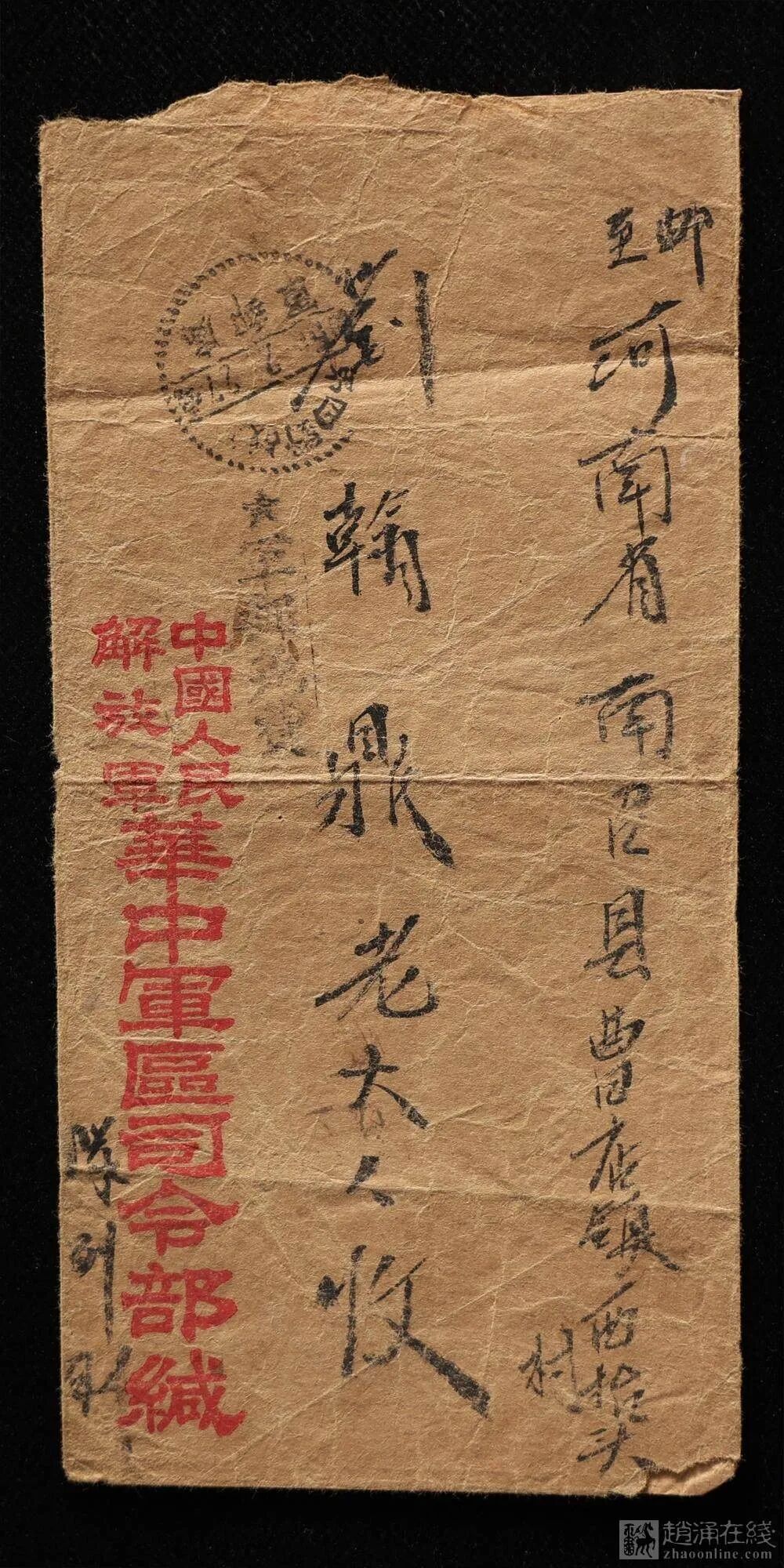 前几天,赵涌在线上成交了一枚第四野战军实寄军邮封,成交价499.50元,具体见下图。