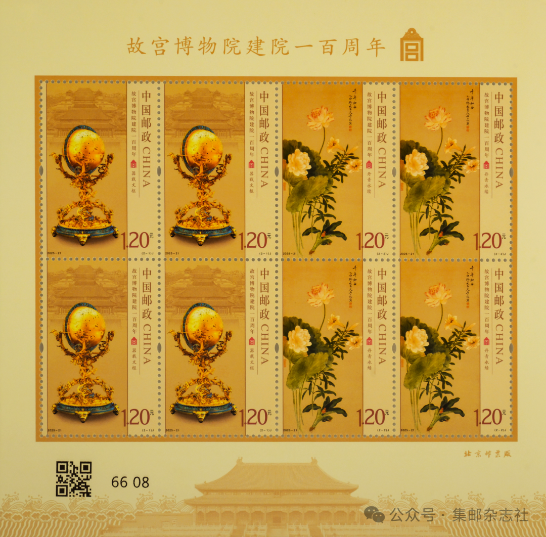 中国邮政定于2025年10月10日发行《故宫博物院建院一百周年》纪念邮票一套2枚。详情如下: