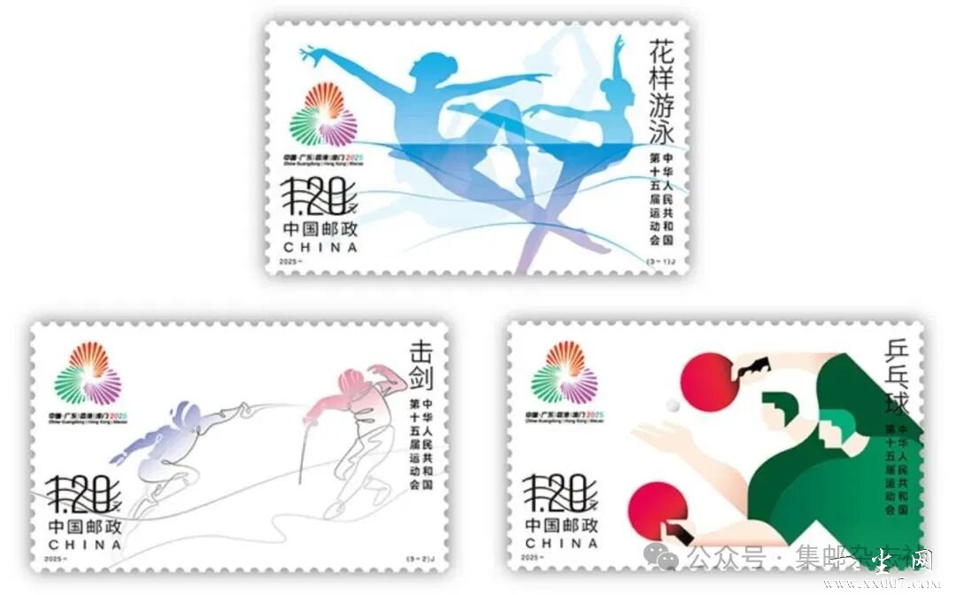 根据2025年纪特邮票发行计划,2025年11月9日将发行《中华人民共和国第十五届运动会》纪念邮票一套3枚。目前,该套纪念邮票图案已经组织设计完成,现公开征求意见。