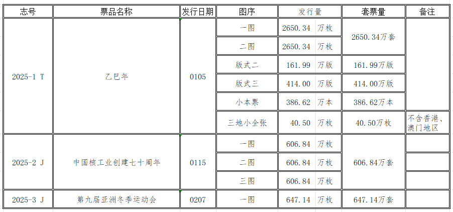2025年1至2月纪特邮票发行量公布