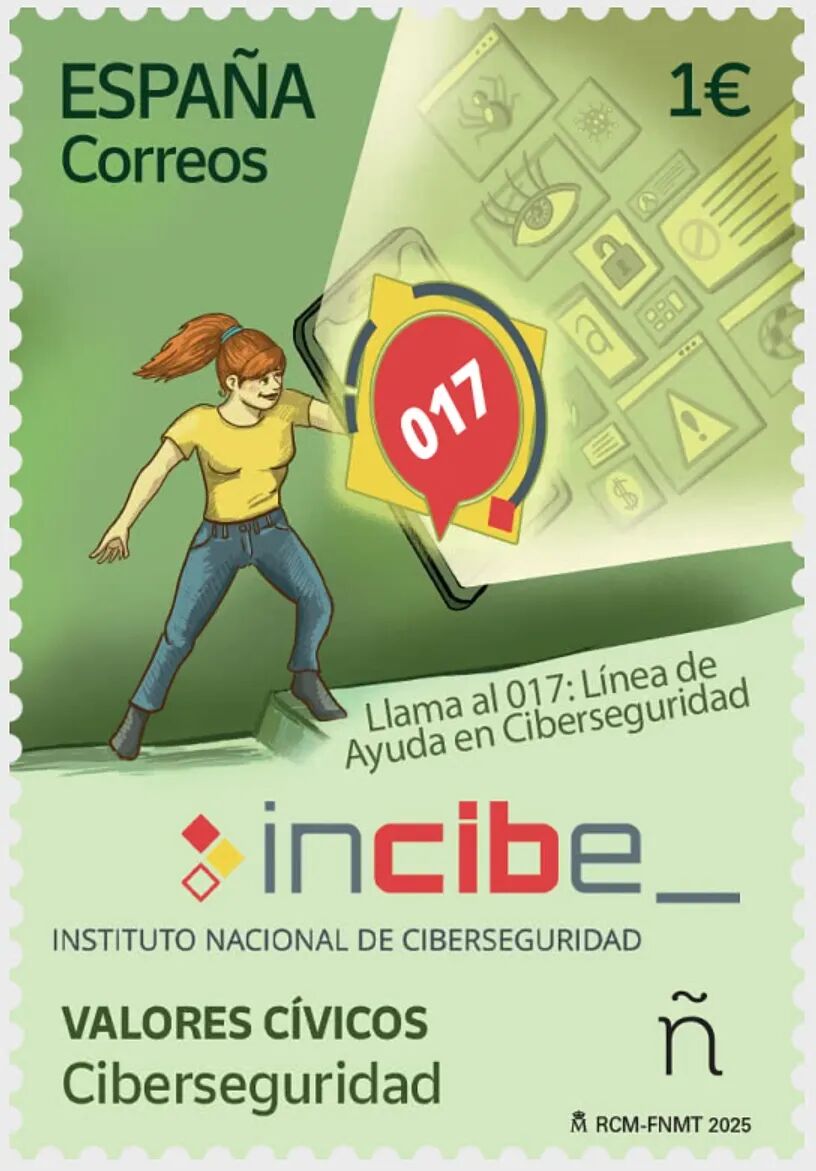 10月1日,发行《网络安全》邮票1套1枚。在今天日益数字化的世界中,防范网络风险和威胁至关重要。隶属于西班牙数字转型与公共职能部的国家网络安全局面向公众推出了提供网络安全咨询服务的热线电话,号码是017,为各类网络安全相关问题提供答疑与支持。017热线提供个性化、免费且保密的专业服务,全年365天早8点至晚11点持续运营,服务对象涵盖普通公民、企业、专业人士、家庭及未成年人。邮票彰显了国家网络安全局的卓越贡献。