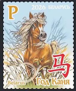 白俄罗斯于2月10日发行《东方历法:马年》生肖邮票1枚,图案表现了奔马及汉字“马”。