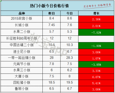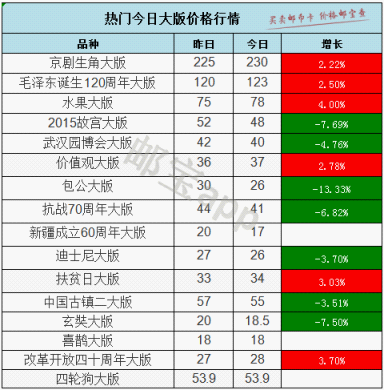 特别提醒:邮宝APP中所有产品的价格为市场大宗交易价格、且不含税点。零售价可能在此基础上浮动10-20%。另外,因篇幅所限,本文亦未列全邮币卡的所有品种。查询更多价格,请登录邮宝APP。