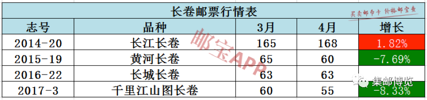 黄河长卷上月行情为65元,本月最新行情为60元,下跌7.69%。