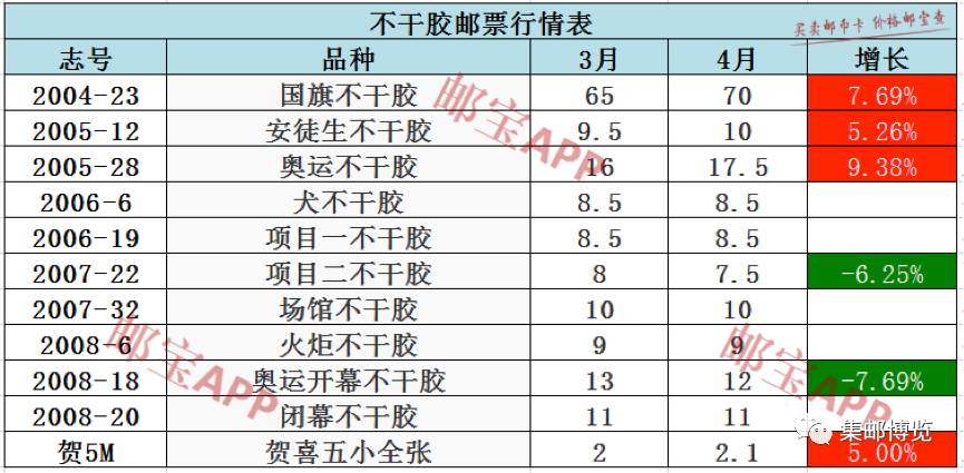 奥运不干胶上月行情为16元,本月最新行情为17.5元,上涨9.38%。