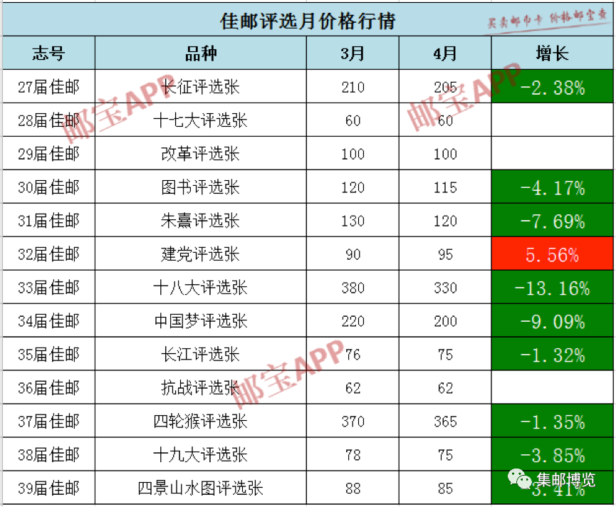 11兔评选纪念张上月行情为4.5元,本月价格为2元,下跌55.56%。