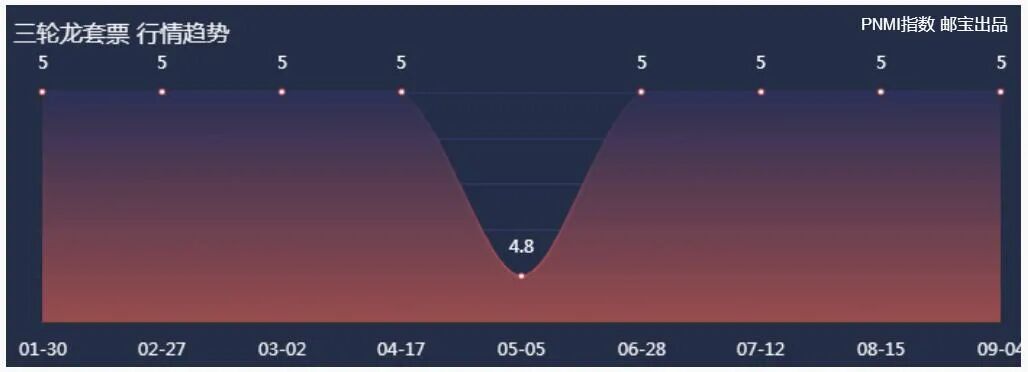 三轮龙套票从走势基本平稳,除了5月价格为4.8元外,其他8个月的价格都是5元,9月相比1月价格持平。