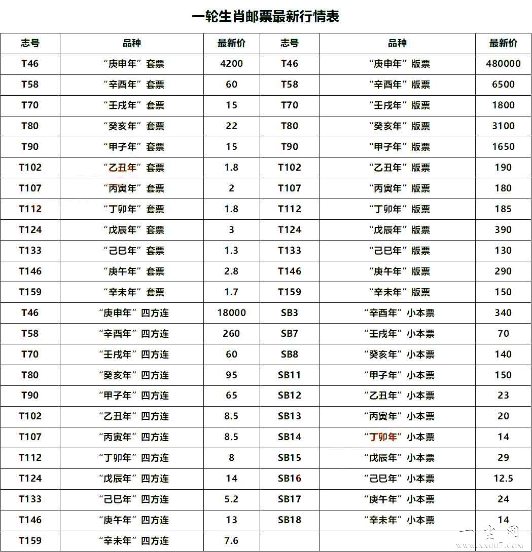 一轮生肖邮票最新市场行情表