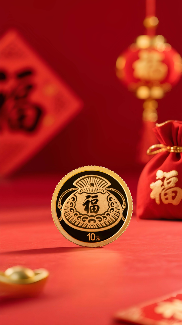 贺岁系列贵金属纪念币的设计每枚都别具特色,而2026年贺岁金银币,更是以其颇具年味的创新设计给我们带来了与众不同的鉴赏体验。其中的1克金币,背面图案为一个绣有“福”字的荷包,设计灵感来源于中国传统刺绣荷包,取材自故宫博物院的馆藏荷包,古韵中满是年俗的味道。而且,这个“福”字来头也不小,为乾隆御笔,整个图案传递出了藏福、纳财、吉祥富足的美好祈愿。
