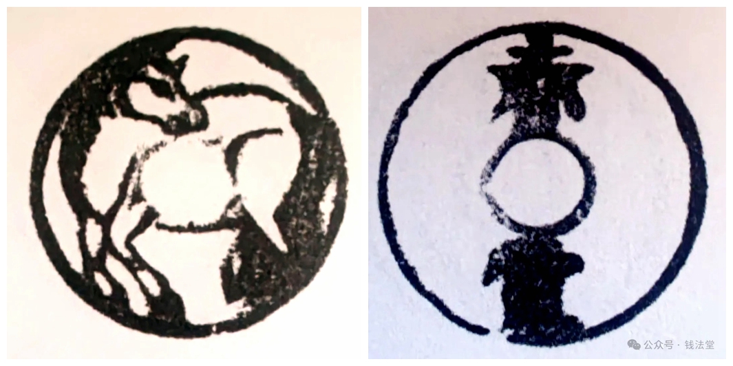 二是一面铸有骏马图案,一面铸以马名,多为历史上传说中的名马。如“白义”、“渠黄” “绿耳”、“赤骥”、“骅骝”、“骐骥”、“赤电”等。白义、渠黄、绿耳、骅骝、赤骥均位列周穆王的八骏之中。“绿耳”也叫“騄駬”,《幼学琼林》记载:“騄駬骅骝,良马之号。”骐骥泛指骏马、良马,《荀子·劝学篇》记载:“骐骥一跃,不能十步。”