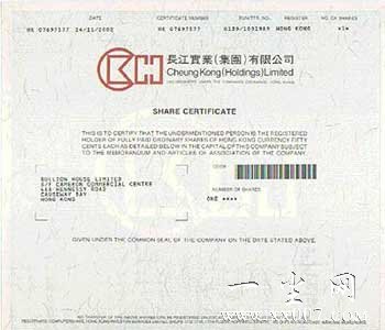 新浪财经讯 在香港H股上市的长江实业股票,突然在中国市场出现了其“真正的股票”。该股票并不是通常意义上的一个概念,而是由香港证券联合交易所印制的一股实物股票,并打破了无单股出售的记录。